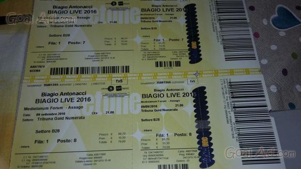 Vendo 2 biglietti concerto Biagio Antonacci forum Assago 9 sett.Prima fila tribuna gold.mandare mp