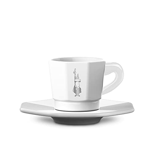 Bialetti Tazzine Ottagonali, Set 4 Tazzine, Bianco e Silver, 75 ml