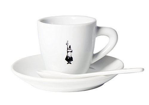 Bialetti Y0TZ001 Istituzionale con Piattino e Cucchiaino, Porcellana, Bianco, Tazzina da caffè