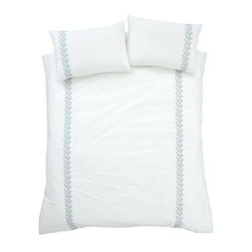 Bianca Fine Linens Bedding - Set copripiumino singolo con federa, in cotone a 180 fili, con motivo a foglie, colore: bianco/verde