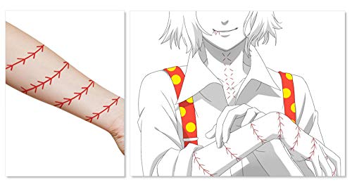 Corto Bianca Parrucca con fessure di capelli rossi e tatuaggio per Tokyo Ghoul JUZO SUZUYA cosplay.