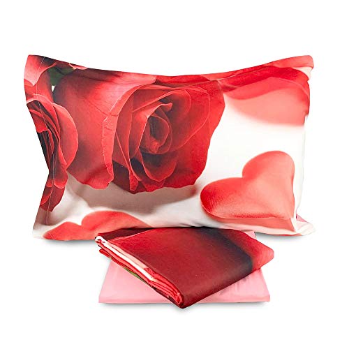 BIANCALUNA Completo Lenzuola Matrimoniale Stampa Digitale Cuori Amore couer 4118