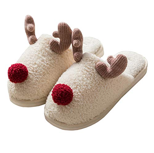 Bianche Pantofole Peluche Renna Slippers Ragazza Invernali Animate Pantofole Donna Esterno Interno Antiscivolo