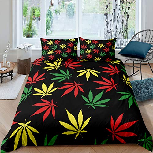 Set di biancheria da letto per adulti, donne, adolescenti, foglie di marijuana, erbacce, foglie di marijuana, foglie di marijuana, foglie di marijuana, pianta naturale, decorativo, copriletto con