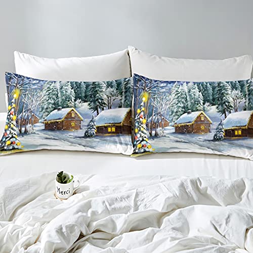 Set di biancheria da letto per albero di Natale, con illustrazione natalizia, copripiumino/trapunta, per bambini, ragazzi, ragazze, fiocchi di neve, inverno, in microfibra, taglia unica