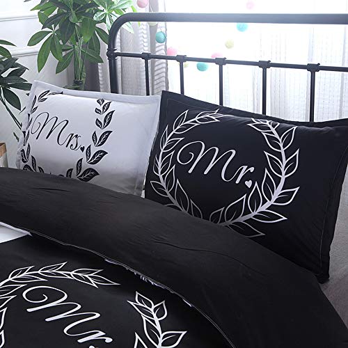 Biancheria da Letto Coppia Copripiumino Bianco e Nero Copripiumino Copripiumino Federa da Letto per Bambini Adulti Genitori Come Regalo,Mr&Mrs,228cmx228cm+2x50cmx70cm