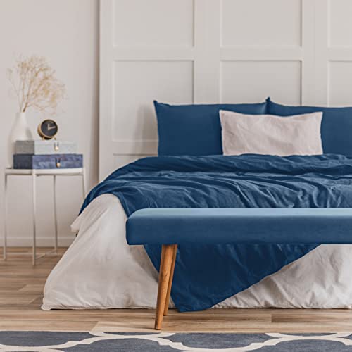 Biancheria da letto, copripiumino 100% cotone, 135 x 200 cm, 155 x 220 cm, 200 x 200 cm, 200 x 220 cm, colore: blu scuro, dimensioni: 200 x 220 cm