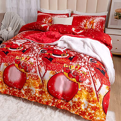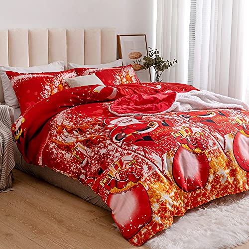 Set copripiumino e federa, con Babbo Natale, con Babbo Natale, set di biancheria da letto, multicolore, con pupazzo di neve, ultra morbido, facile da pulire, design moderno