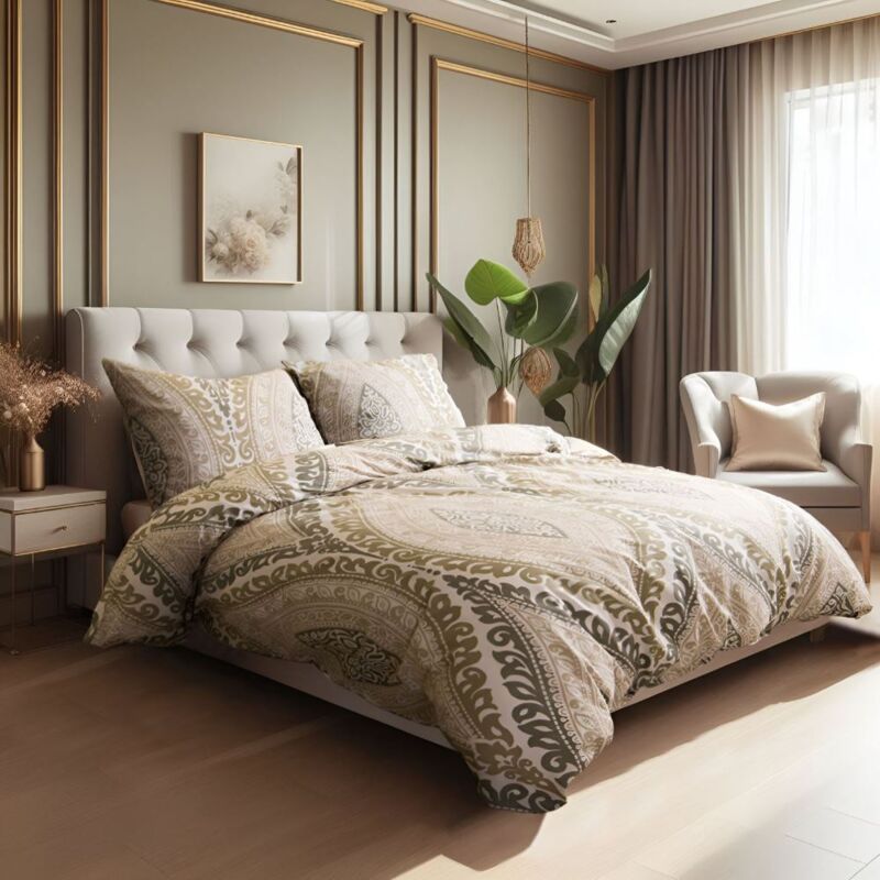 I set di biancheria da letto sono realizzati al 100% in cotone della massima qualità. La trama utilizzata è caratterizzata da alta densità e durata. Il tessuto delicato e morbido al tatto combinato con interessanti modelli di rotazione garantiscono un grande comfort durante il sonno. I completi letto sono realizzati con tessuti certificati. Composizione: 100% cotone Grammatura: 110 g/m² 2 Chiusura: cerniera Completo letto: 160x200 +2x (70x80) cm < br> < font color="red"> Design unici creati dai nostri designer I colori delle foto dei prodotti potrebbero differire leggermente dalla realtà