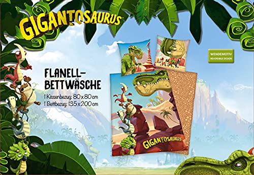 Set di Biancheria da Letto "Gigantosaurus", Reversibile, Federa 80 x 80 cm, Copripiumino 135 x 200 cm, Chiusura a bottoni, Cotone/Flanella