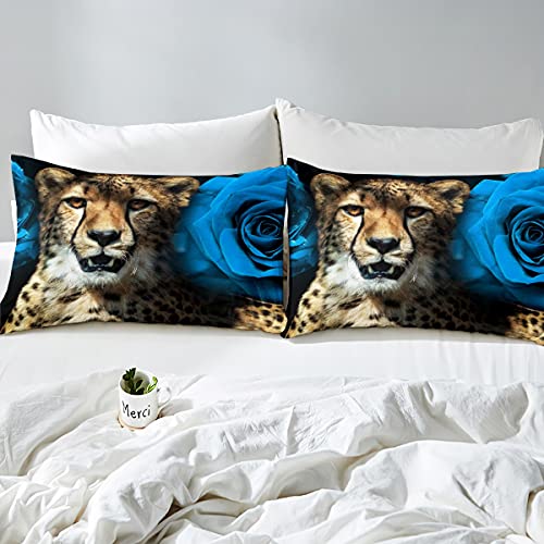 Set di biancheria da letto per letto matrimoniale, motivo leopardato, con stampa 3D africana con ghepardo africano, per bambini e adolescenti, a tema piante animali, decorativo, 3 pezzi, per la