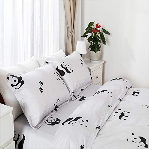 Set di Biancheria da Letto Matrimoniale de 4 Pezzi, Fansu Set Animale Bello Copripiumino per Letto Matrimoniale Chiusura a Zip con Lenzuola Piane e 2 federe (200x200cm,Panda - Bianco)