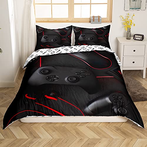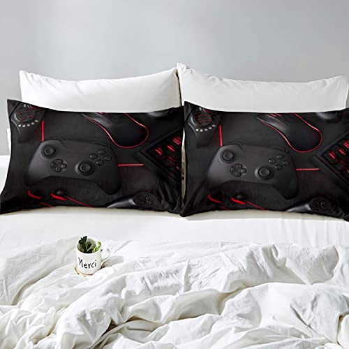 Set di biancheria da letto morbido e moderno con 1 federa per cuscino per videogiochi, per bambini, ragazzi, ragazzi e ragazzi, colore: nero e rosso, per letto singolo