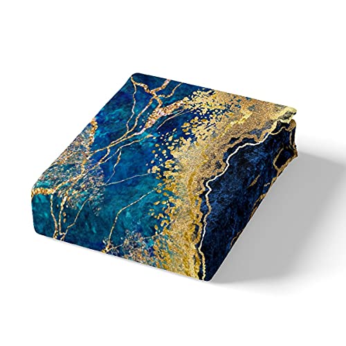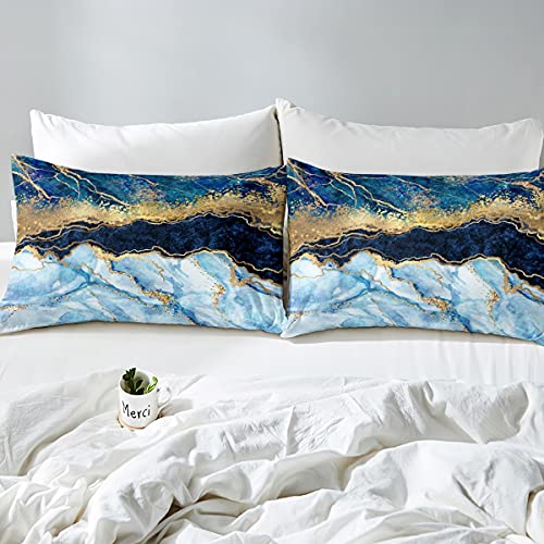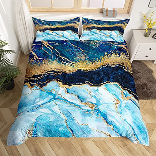 Set di biancheria da letto per letto singolo in marmo astratto con texture di marmo per bambini e bambini, set di copripiumino tie dye dorato marmorizzatura trapunta blu acqua inchiostro fluido arte