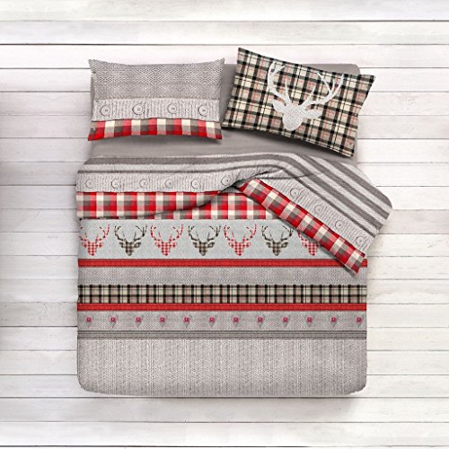 Biancheria Store Copripiumino in 100% Cotone, per Letto Matrimoniale 2 Piazze, Disegno Cervo Cervi Tirolese