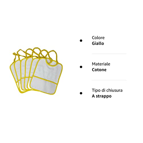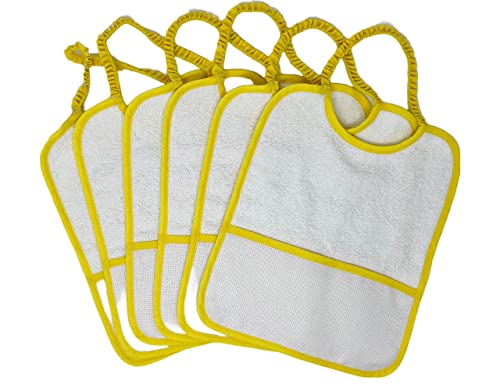Biancheriastore New style at home Set 6 bavaglini in spugna di cotone 100%, con elastico e tela Aida da ricamare ideali per Asilo Vari Colori - Giallo
