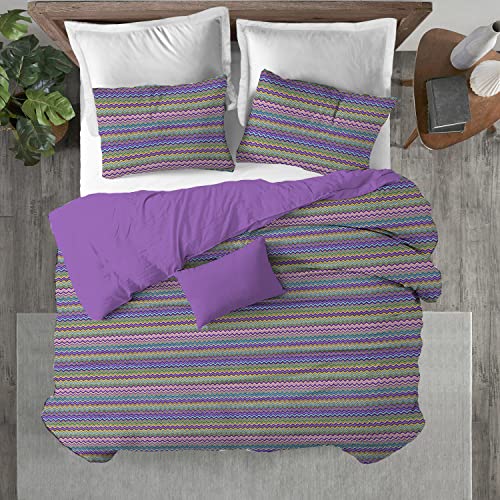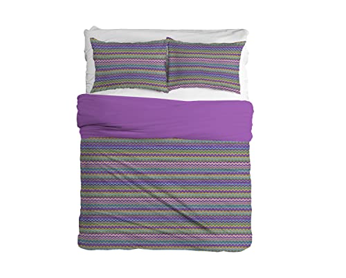 Biancheriastore New style at home Copripiumino 3 Misure Puro Cotone Prodotto in Italia COPRIPIUMONE |Disegno Zig Zag Multiocolore| Sacco Copripiumino + Federe | 100% Cotone - Letto Singolo - Lilla