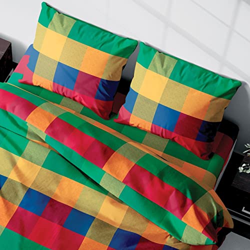 Biancheriastore New style at home Parure Copripiumino Scozzese Quadri Colori Neutri o Forti 100% Cotone Made in Italy | Set Sacco Copri Piumino e Federe | - Singolo - Rosso