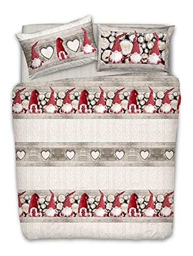 Biancheriastore New style at home Parure Copripiumino Stampa Fantasia Gnomi Nanetti 100% Cotone Made in Italy | Set Sacco Copri Piumino e Federe | - 2 piazze - Rosso
