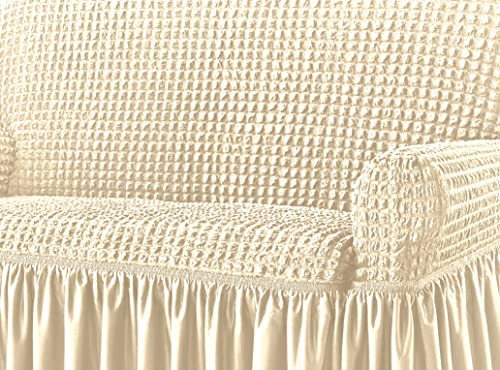 ELASTICIZZATO - Copridivano E Copripoltrona Luxory In Tinta Unita Colore Panna Con Ottima Vestibilità Grazie Al Tessuto Bielastico, Elasticizzato Ed Estensibile Sia In Verticale Sia In Orizzontale In Modo Che Si Adatti Al Meglio Alla Struttura Del Sofà. Tessuto Copertura Divano E Poltrona 100% Poliestere