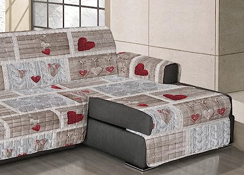 BIANCHERIAWEB Copridivano Trapuntato per Divani con Penisola Disegno Shabby Love 280-285 cm Rosso