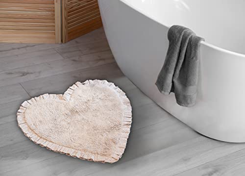 QUALITA' - Il Tappetino Bagno A Forma Di Cuore Colore Beige Con Bordo Plissettato Fantasia Pois E' Prodotto Con Una Massima Cura Al Dettaglio Ed Alla Qualità. Il Colore Resistente Rimane Vivo E Solito Anche Dopo Numerosi Lavaggi