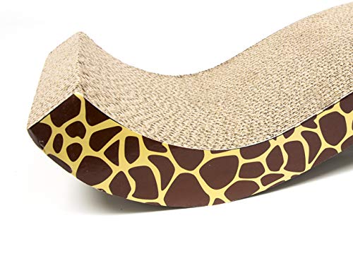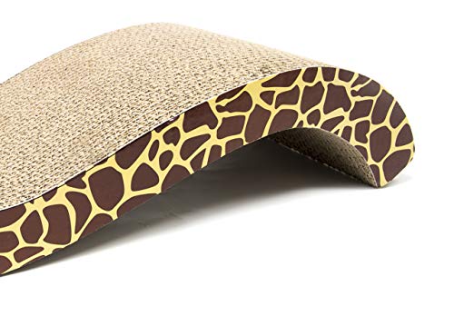 MATERIALE E MISURA - Il Tappetino Tiragraffi Ha Una Forma Ad Onda Ed E' In Cartone Ondulato Con Bordo In Cartone Colorato Fantasia Maculata. La Tavoletta Misura 53x22x12 cm