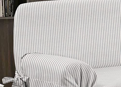 BIANCHERIAWEB Telo Copridivano con Laccetti Fiocco, Salvadivano Protettivo, Copridivano 2 Posti, Fantasia Riga bastoncino grigio