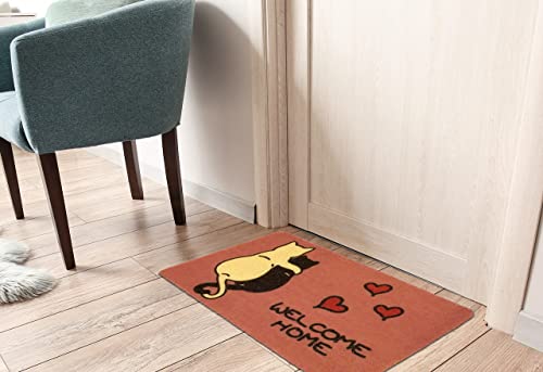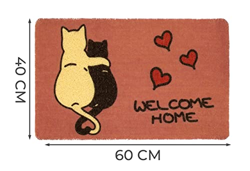 MODERNO - Tappeto Ingresso Zerbino Cocco In Moderna E Simpatica Fantasia Dal Design Innovativo e Colorato Con Gattini. Spessore Tappeto 8mm.