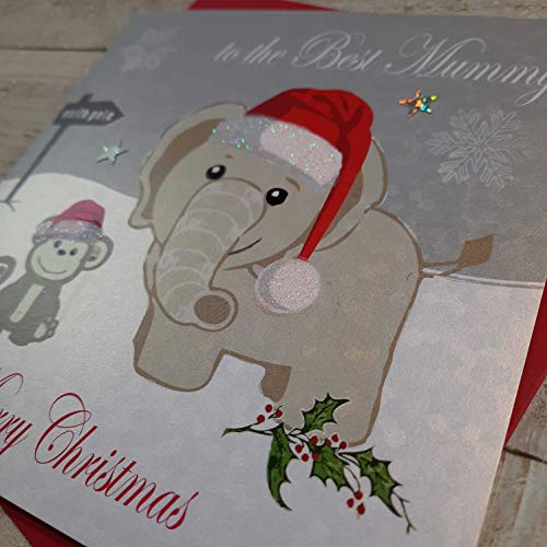 Bianco Carte Cotone per la Mano Elephant Migliore Mamma Buon Natale e Monkey Scheda
