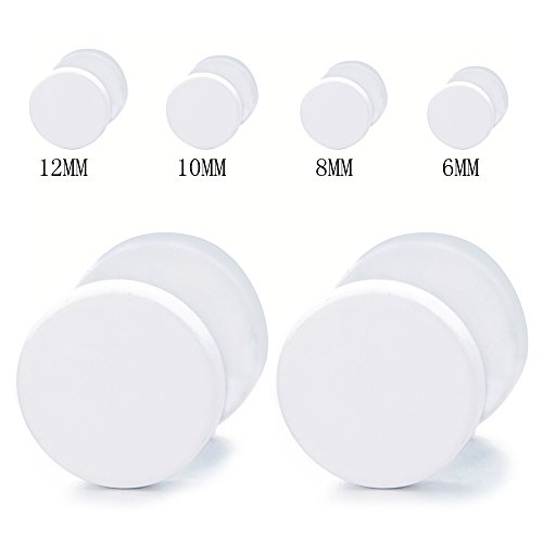 6MM Bianco Cerchio Orecchini da Uomo Donna, Finto Dilatatore Fake Cheater Plug Gauges, Acciaio Inossidabile, 1 Paio