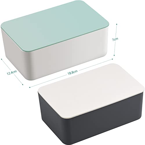 2 PCS Bianco e Grigio Porta Fazzoletti con Coperchio Tovagliolo Scatola Rettangolare Porta Scatola Dispenser per Camera da Letto, Ufficio, Bagno, PP, 18.8 x 12.4 x 7 cm
