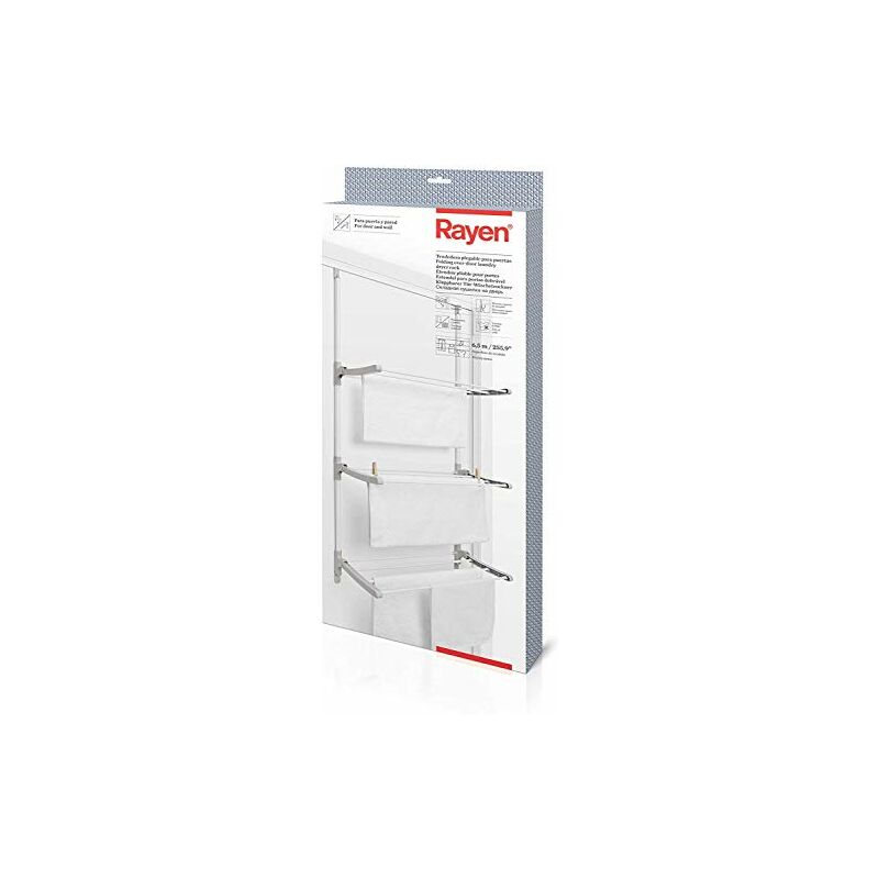 Rayen Bianco e grigio | 124 x 62,5 x 28 cm | Stendibiancheria pieghevole per porte e pareti | Aste XXL | 6,5 m di superficie di sospensione | Multifunzionale 124 x 62,5 x 28 cm