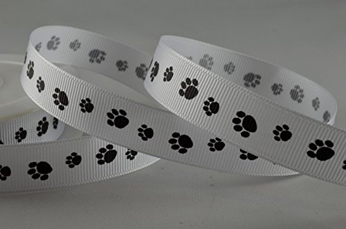 Qualità Premium 16 mm x 20 MTR grosgrain nastro bianco con nero Paw print design
