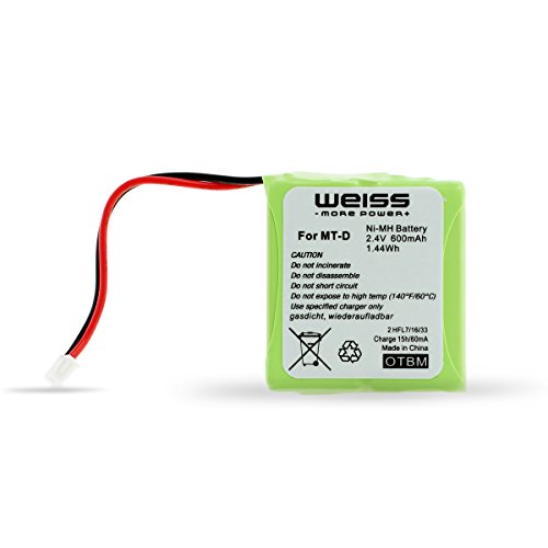 Contenuto della confezione: 1 X Weiss batteria per Fritz!Fon MT-D/Audioline Slim DECT 500/Medion MD81877/T-Com Sinus A201 [sostituisce: 5M702BMX/GP0827/GP0845] 600 mAh 1.44 Wh Ni-MH
