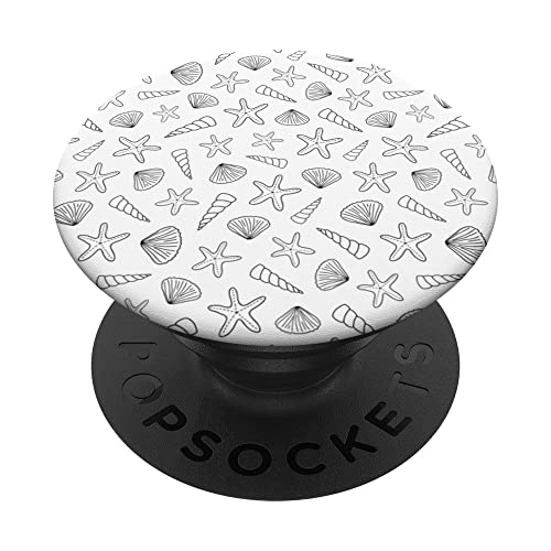 Bianco e nero conchiglia Doodle modello viaggio spiaggia arte PopSockets PopGrip Intercambiabile