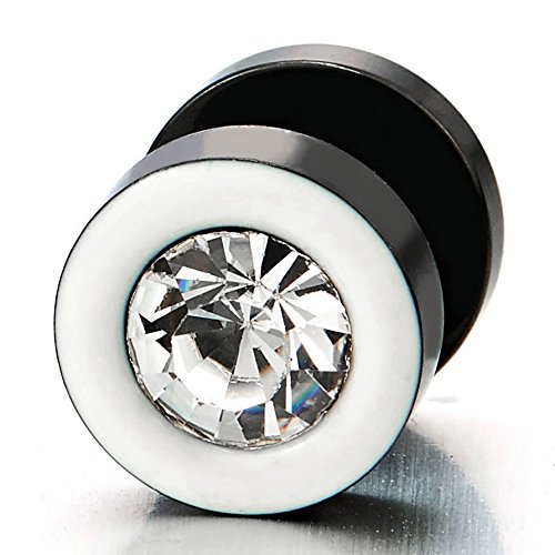 2 Bianco Nero Orecchini da Uomo Donna, Finto Dilatatore Fake Plug, Acciaio Inossidabile con 6MM Zirconi