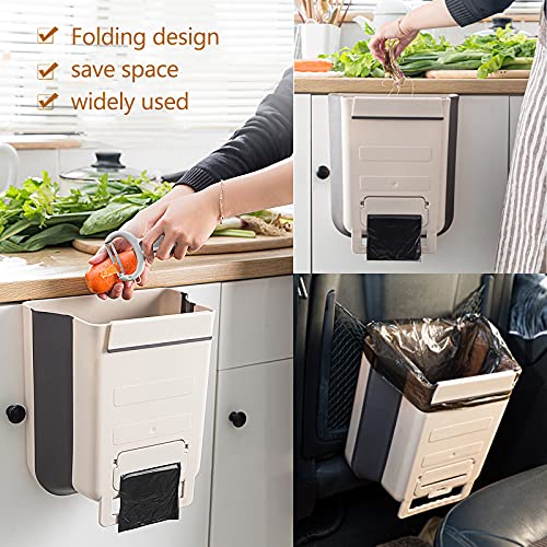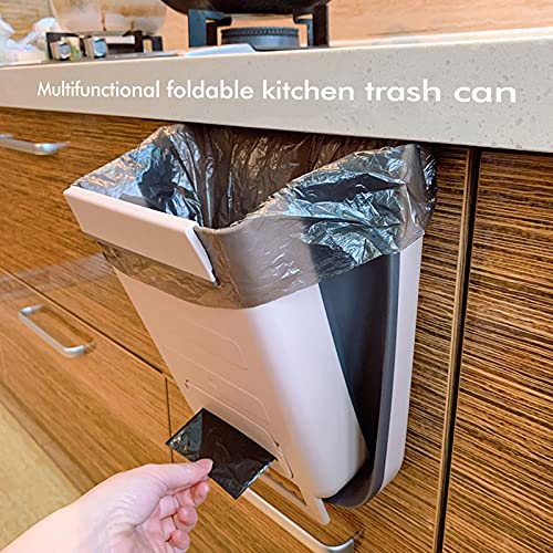 Bianco Pattumiera Pieghevole Sospesa con un Raschietto in Gomma Morbida e Contenitore per Sacco Della Spazzatura, 9l Pattumiera Sospesa Cucina per Cucina Bagno Ufficio Auto