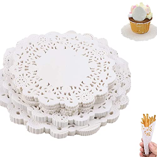 Bianco Pizzo Carta Di Pizzo, 300 Pezzi Carta Pizzo Torta, Centrini Rotondi in Carta, Decorativi in Pizzo Centrino Di Carta per Decorazioni Tavola per Feste Matrimoni (3 Misure)