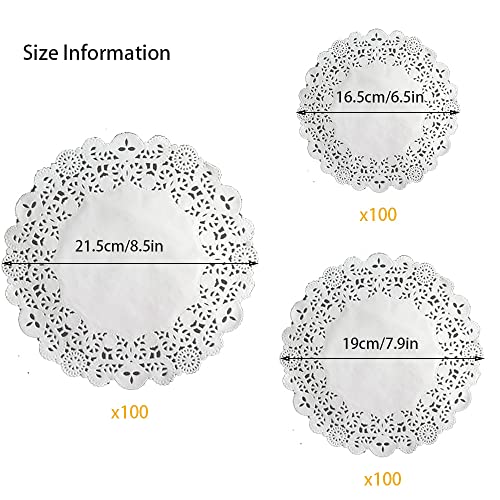 【3 Formati】Ci sono 3 formati di carta pizzo torta, 100 pezzi da 6,5 ", 7,5" e 8,5 "ciascuno. Queste 3 dimensioni e quantità possono sostanzialmente coprire tutte le tue esigenze quotidiane.
