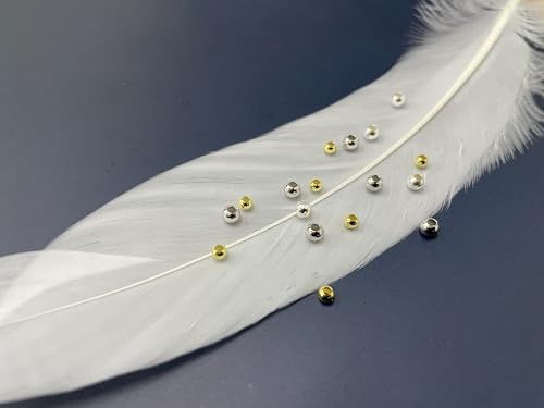50 Pz Oro Bianco Placcato 925 Argento Sterling 3mm (0,12 Pollici) Piccole Perline Rotondo Senza Cuciture Liscio Distanziatore Sfera per Gioielli che Fanno Risultati