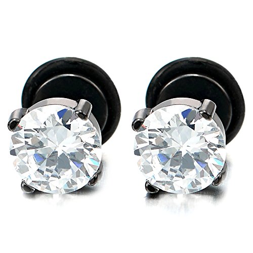 5MM Bianco Zirconi, Nero Orecchini da Uomo da Donna, Orecchini a Lobo, Acciaio Inossidabile, 1 Paio