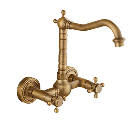 BiaoTeng Rubinetti Bagno Retro Vintage,Miscelatore A Parete Per Lavabo Bagno,Rubinetto Lavandino Bagno Vintage,Rubinetto A Parete Lavabo Bagno Nero Vintage,Antico B