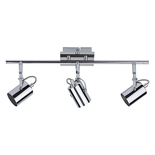 Biard 'Broadway' Binario Porta Faretti Multidirezionale a Tre Luci per Lampadine Spot GU10 a Soffitto (Cromo Lucido, IP20, Orientabile 360°)