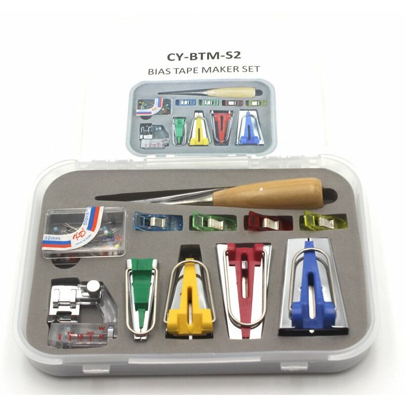 4 misure di sbieco nastro: verde 6 mm, giallo 12 mm, rosso 18 mm, blu 25 mm. 4 fermagli per trapuntatura: tengono gli strati di tessuto facilmente e senza intoppi. < p>Pratico punteruolo: ideale per praticare fori per rivetti, bottoni automatici, occhielli, ecc. Spille da cucito colorate in una scatola: vestito per fare artigianato fai-da-te, decorare il tuo artigianato cucito a casa. Set perfetto e ordinato: include tutto ciò di cui hai bisogno e semplifica il compito di realizzare nastri in sbieco di diverse dimensioni.