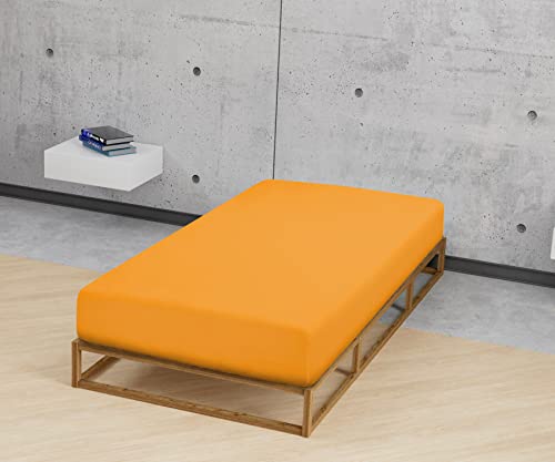 Biberna 0077155 Lenzuolo Jersey (Altezza Materasso max. 22 cm) 1X 90X190 cm > 100X200 cm, Zafferano
