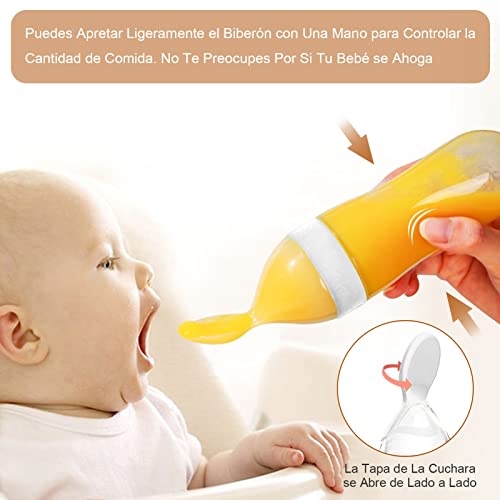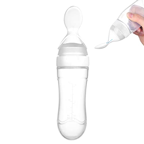 Biberon per Neonati in Silicone,1 PZ Alimentatore per Cucchiaio Spremere per Alimenti per Bambini, Alimentatore per Cereali per Alimenti Freschi Caldo con Cucchiaio, Senza BPA(Bianco)