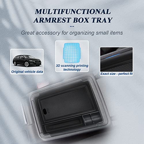 BIBIBO Contenitore per console centrale per Skoda Octavia 4 IV MK4 RS Combi 2020-2024, organizer con tappetino antiscivolo, bracciolo centrale, console, braccioli, accessori per braccioli auto