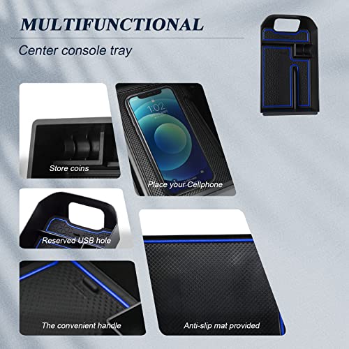 BIBIBO Portaoggetti Bracciolo per Toyota RAV4 / Hybrid/Plug-in Hybrid 2019-2022, Scatola di Immagazzinaggio, Auto Accessori Originali Interni Organizer, Storage Box con tappetino antiscivol (Blu)