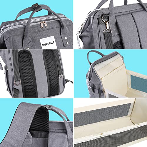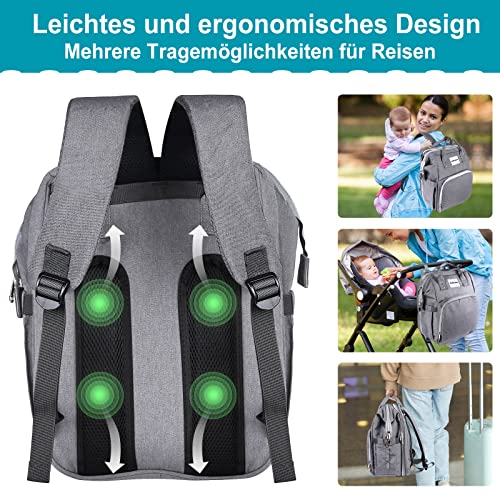BIBIFOIU Borsa fasciatoio, zaino per bambini con grande capacità, borsa per pannolini da viaggio portatile con lettino pieghevole, grigio., L